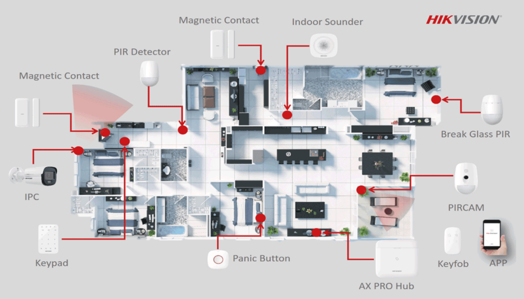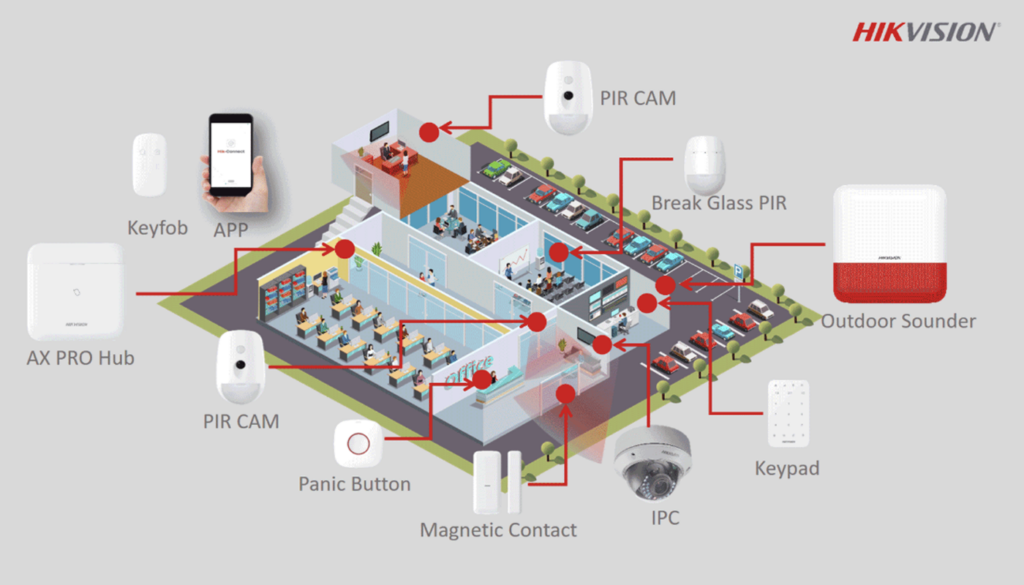 El Sistema de Alarmas protege los activos de una empresa o propiedad mediante la detección oportuna de intrusiones y situaciones de riesgo en áreas sensibles, como accesos principales, almacenes, oficinas o zonas restringidas.